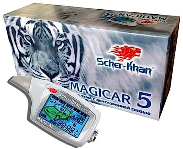 Дистанционный запуск, жидкокристаллический брелок, дальность туда обратно до 1,5км, турбо таймер, свободные руки, запуск по таймеру 2,4,8,24; по t -15, -25, +60; по разряду АКБ ниже 11,5В, установление точного времени запуска двигателя, синхронизация брелоков. Автомобильная охранная система с двусторонней связью и автоматическим запуском двигателя SCHER-KHAN MAGICAR 5В системе используются особые принципы кодирования передаваемой информации, они защищают от сканирования, а также от перехвата кода. С помощью брелока-коммуникатора с жидкокристаллическим Pin Up у Вас есть возможность постоянно получать полную информацию о состоянии Вашего автомобиля. Высокий комфорт и удобство создает дистанционный контроль информации о состоянии аккумулятора, а также температуры в салоне автомобиля.