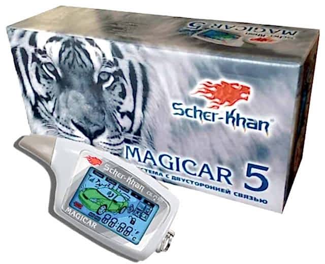 Дистанционный запуск, жидкокристаллический брелок, дальность туда обратно до 1,5км, турбо таймер, свободные руки, запуск по таймеру 2,4,8,24; по t -15, -25, +60; по разряду АКБ ниже 11,5В, установление точного времени запуска двигателя, синхронизация брелоков. Автомобильная охранная система с двусторонней связью и автоматическим запуском двигателя SCHER-KHAN MAGICAR 5В системе используются особые принципы кодирования передаваемой информации, они защищают от сканирования, а также от перехвата кода. С помощью брелока-коммуникатора с жидкокристаллическим Pin Up у Вас есть возможность постоянно получать полную информацию о состоянии Вашего автомобиля. Высокий комфорт и удобство создает дистанционный контроль информации о состоянии аккумулятора, а также температуры в салоне автомобиля.